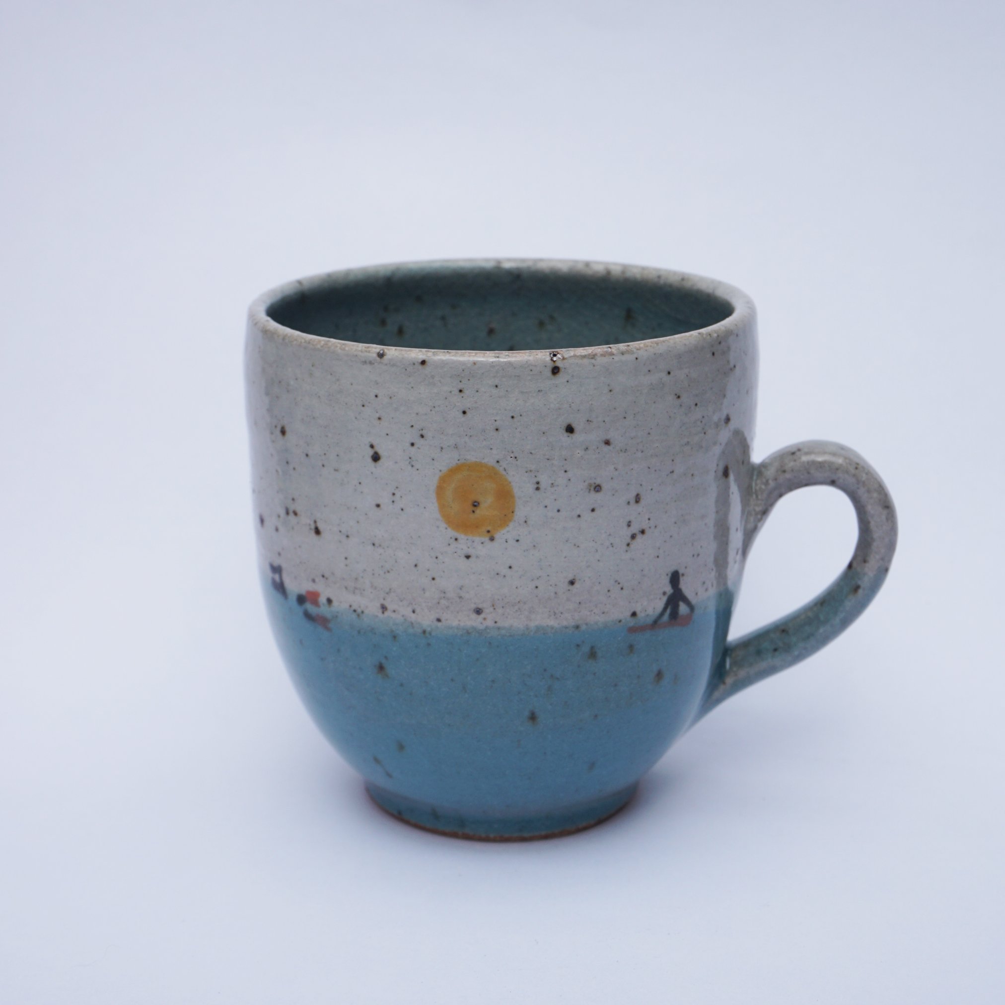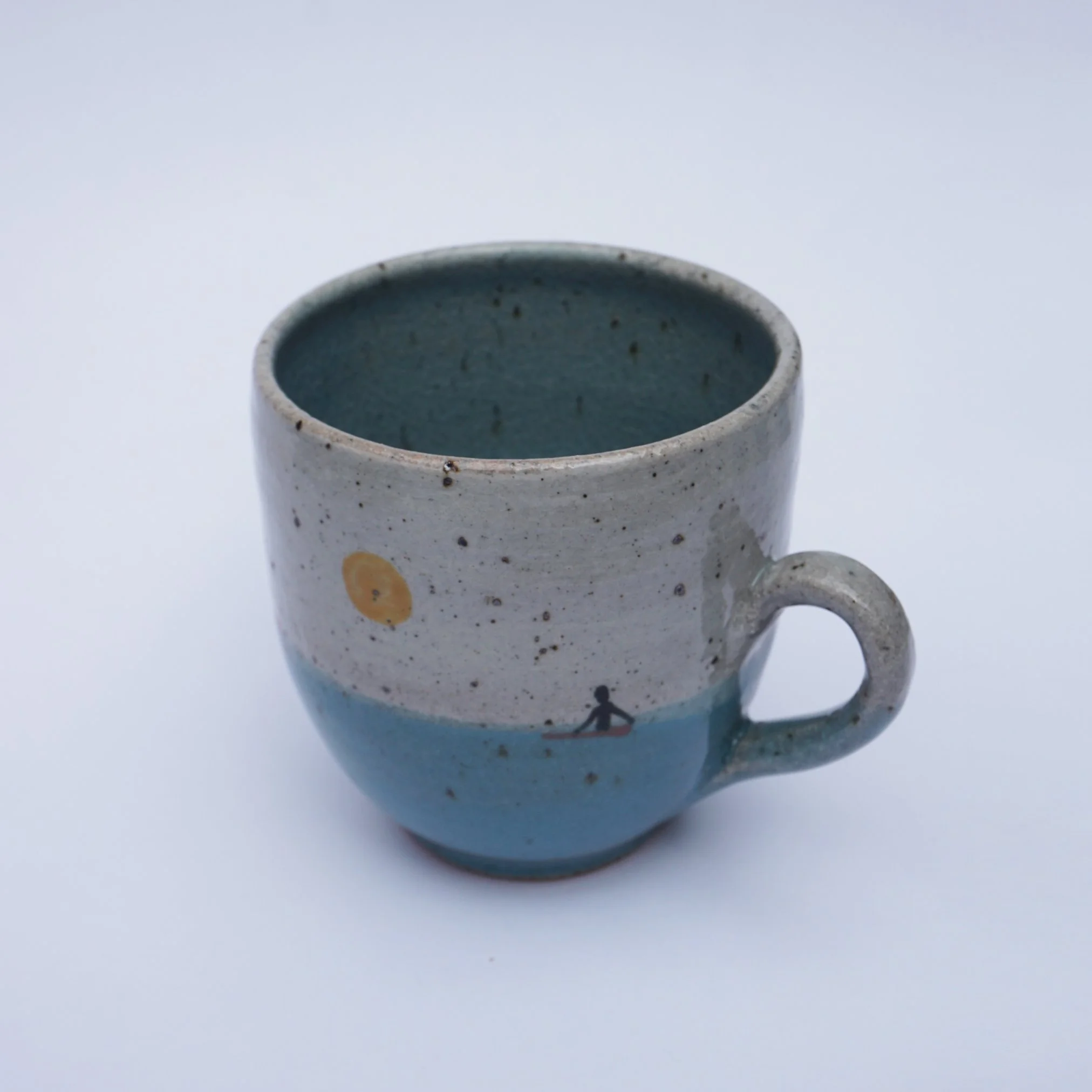 When you hold it, a smooth glazed finish all over the mug gives this piece depth and dimension. You can encounter surfers and body surfers on the surface of the blue ocean of glaze.